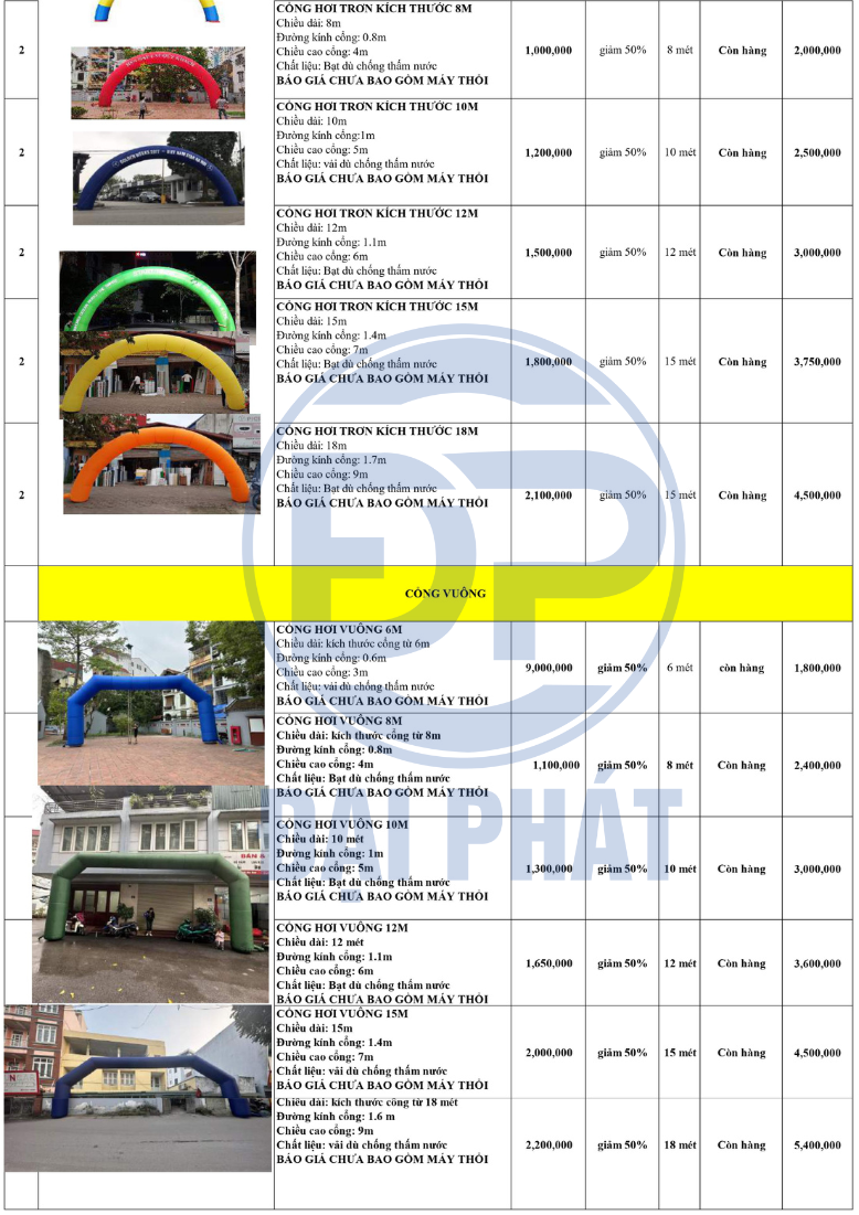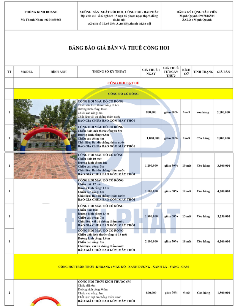 BÁO GIÁ MUA VÀ THUÊ RỐI HƠI CỔNG HƠI TẠI ĐẠI PHÁT