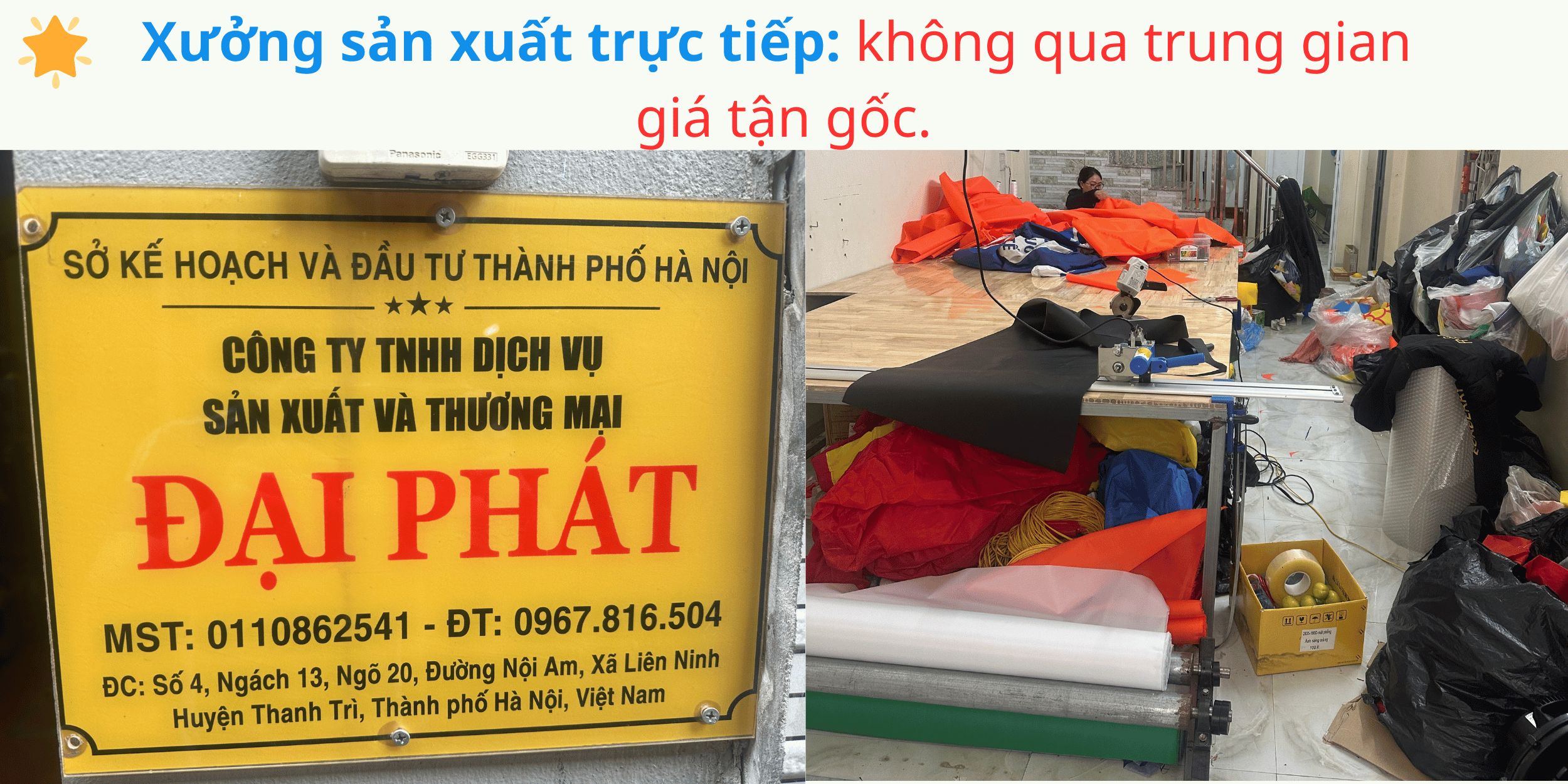 Địa chỉ xưởng: Nhà số 16, đường Cổ Điển Tứ, Tứ Hiệp, Thanh Trì, Hà Nội.