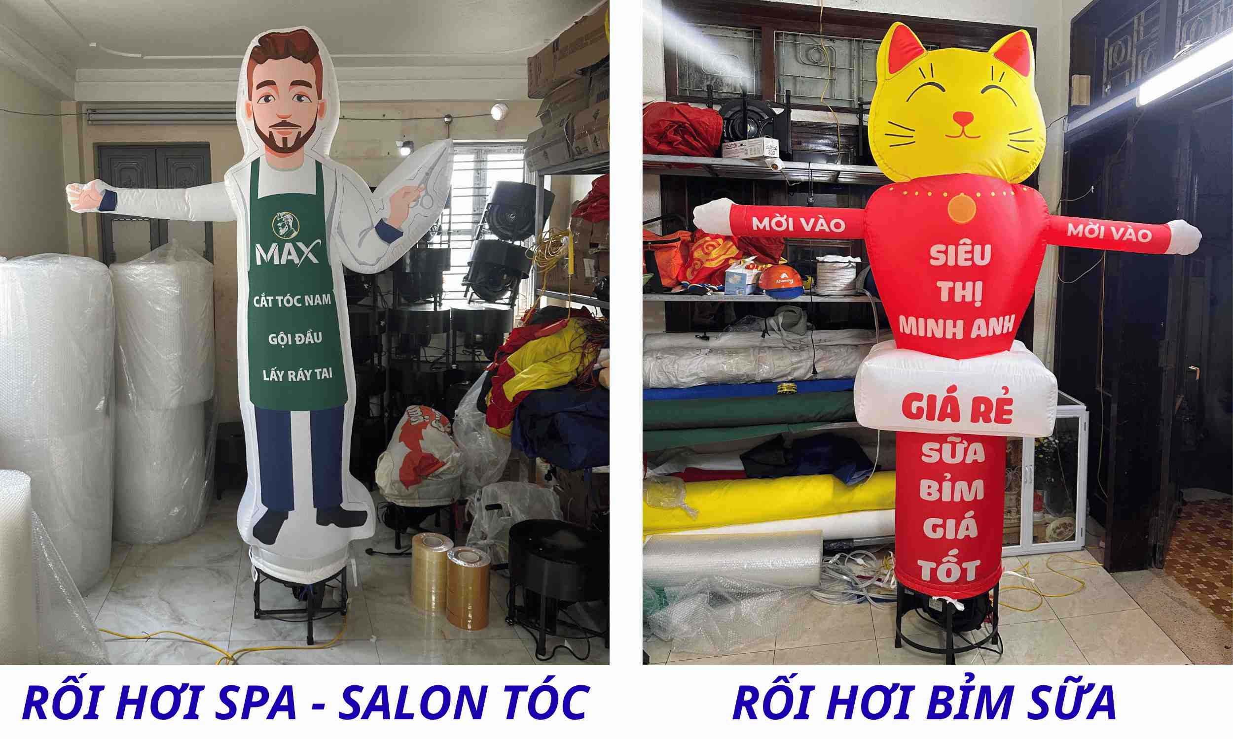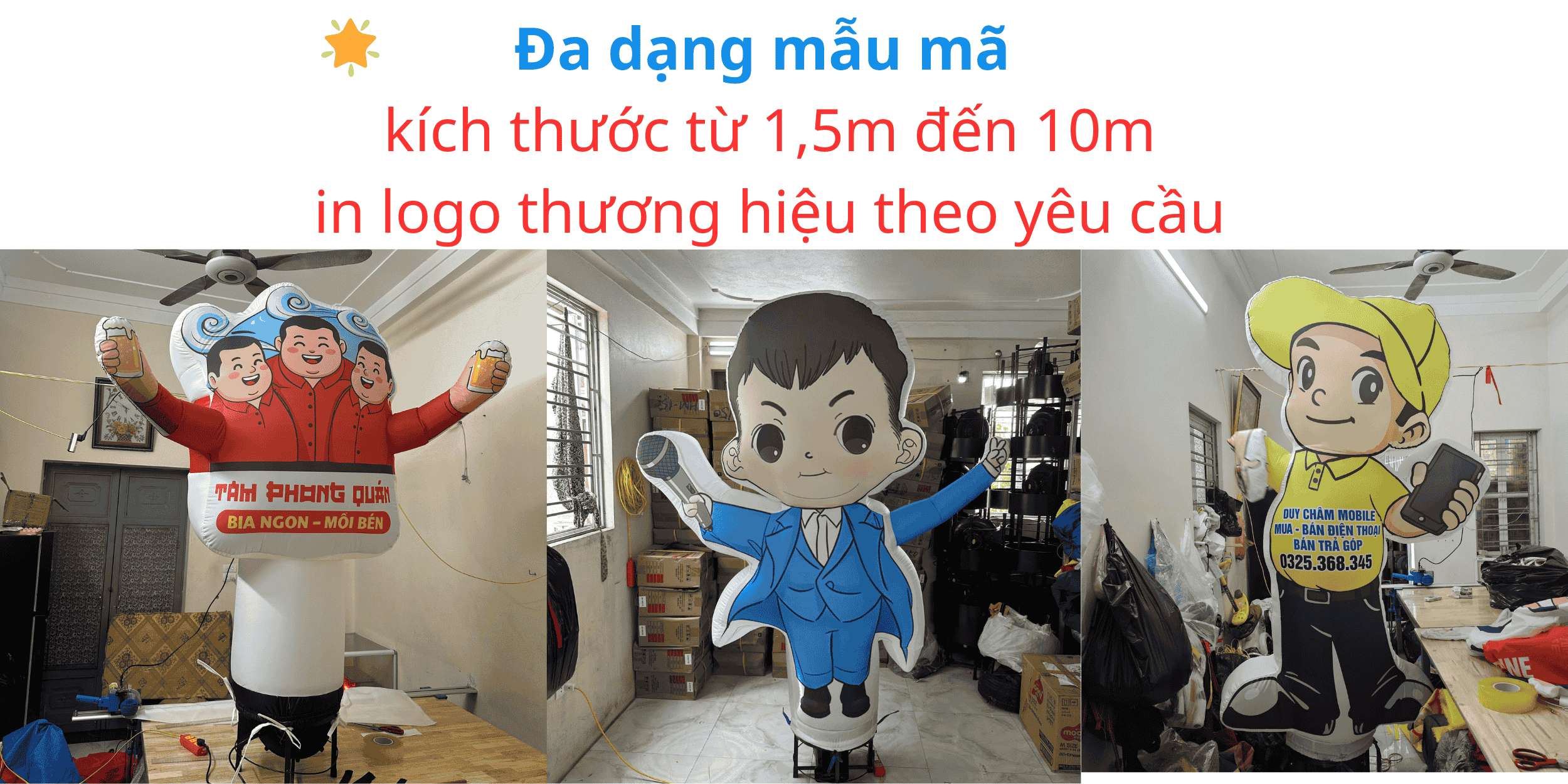Đa dạng mẫu mã: rối hơi tay vẫy, rối hơi mascot, rối hơi quảng cáo in logo.